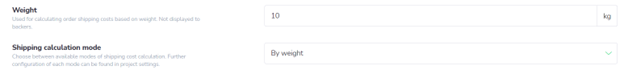 Conditional Shipping Costs - this rule should be used in cases when a creator wants to set up a minimum shipping cost for small orders and use this option if they want to add an additional shipping cost rule for pledges that weigh less or are smaller than usual pledges and because of that the shipping cost may be below the shipment cost they can send the parcel for. This way, depending on the content of the pledge, shipping will be calculated based on weight or quantity. The conditional shipment rule allows defining a minimum shipping cost when the weight of the order components is below the minimum weight value. For example, if you set the cost of shipping of a pledge to be up to 5kg for Europe to 5$, the cost of shipping will not change unless the weight is over 5kg. If the pledge is heavier than 5kg, the shipping cost will be calculated based on quantity. For this rule to work, you have to set up product shipping settings to "by quantity."