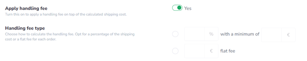 Some shipping hubs require a flat fee for handling shipping and now you can add it here. It will be added to the order shipping cost.