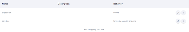 Click "Add a shipping cost rule," and define the product name, and add a description. It's recommended to add a shipping rule for every available product and name the shipping cost rule with the product's name, and choose the shipping behavior (rule).