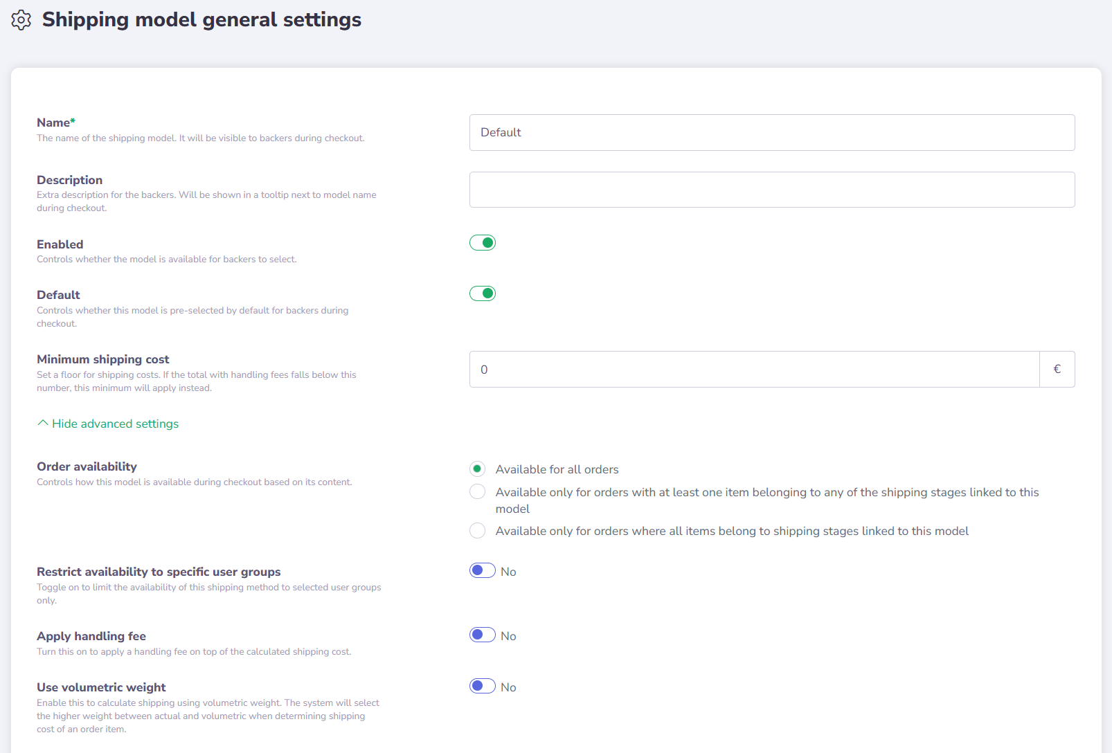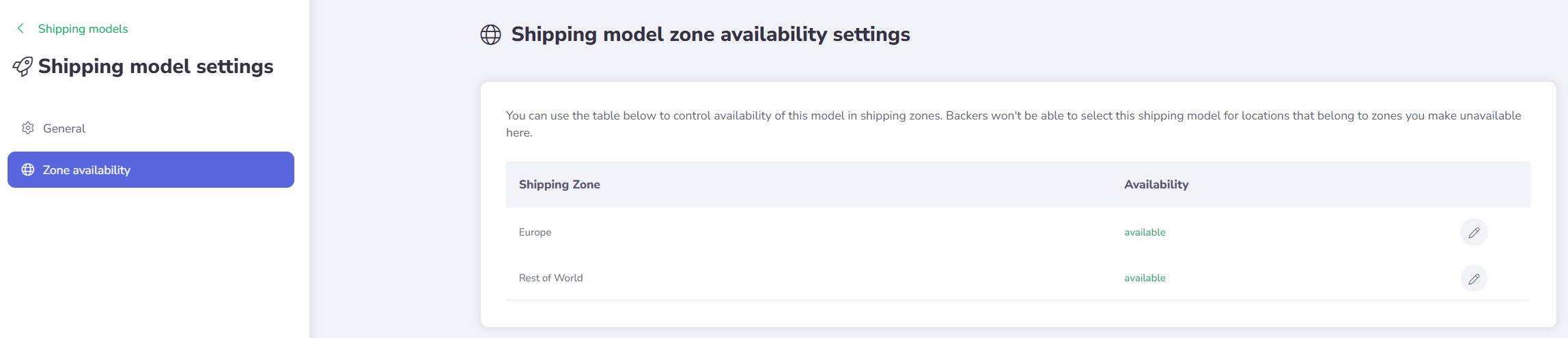 A Shipping Model is a set of settings that defines the shipment options available to backers.