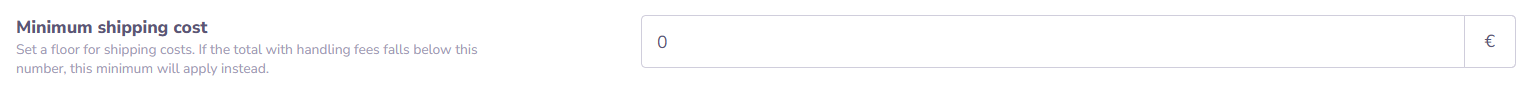 Set a minimum shipping cost. If the calculated cost plus handling fees is lower than this amount, the minimum applies.