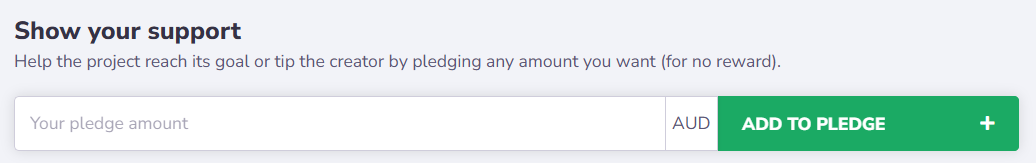 If you want to pledge to a project, choose the project you want to contribute to and open its campaign page. You'll see info about when the campaign ends, how much money it has collected so far, and how many backers contributed. To support it, click "Back this project". You'll be transferred to available rewards and add-ons. Choose the items you want to purchase and add them to your cart. You can also leave a tip for creators for no reward: